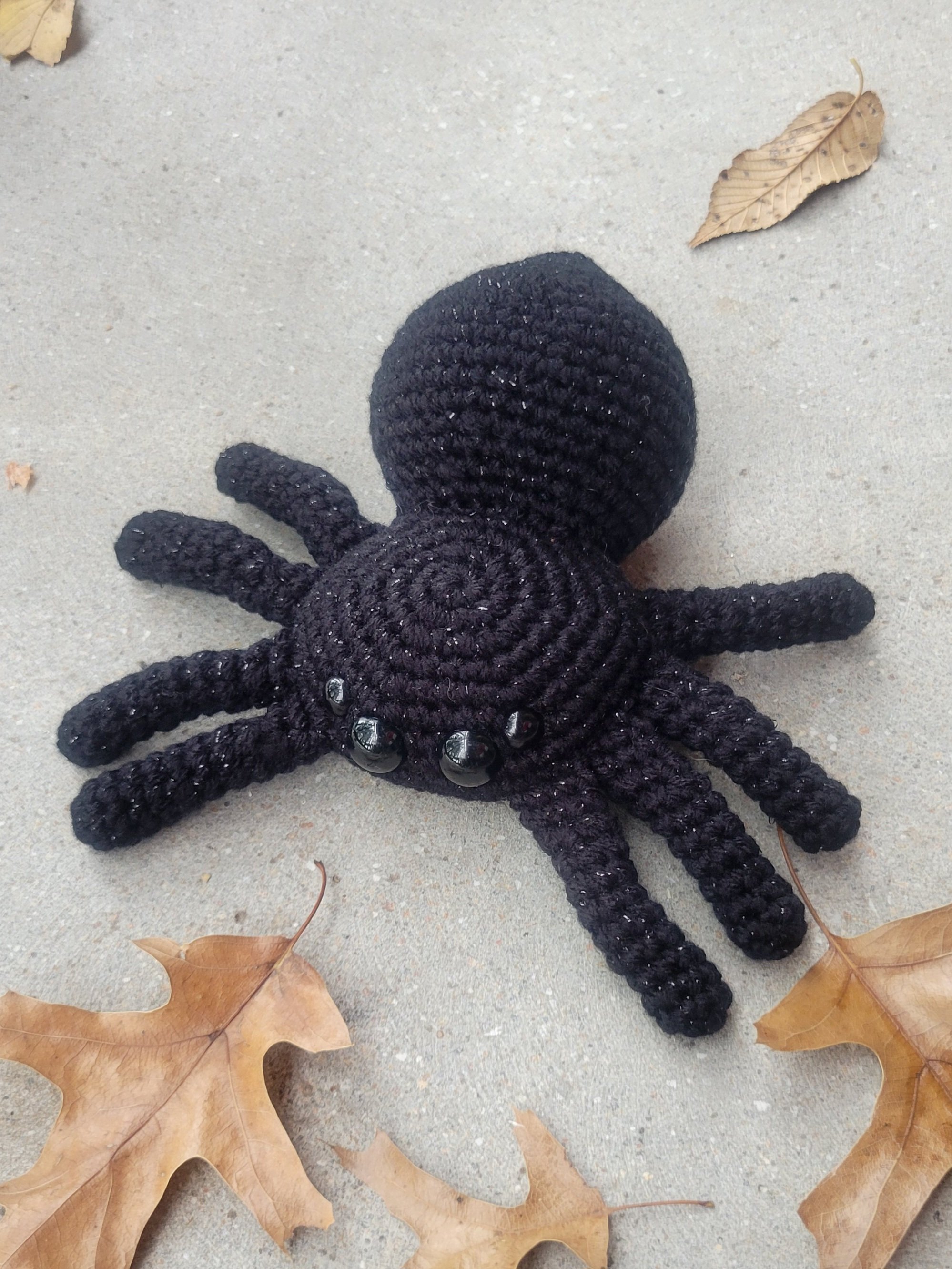 This creepy cute spider is just over 7.5inches toe to toe and 5.5inches long.
